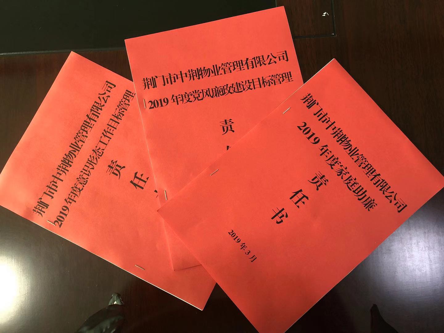 2019年3月14日,市中荊物業(yè)管理有限公司黨總支與公司各黨支部、部室、領(lǐng)導(dǎo)成員簽訂了《2019年度黨風(fēng)廉政建設(shè)目標(biāo)管理責(zé)任書(shū)》、《2019年度意識(shí)形態(tài)責(zé)任書(shū)》、《2019年度家庭助廉責(zé)任書(shū)》,各類責(zé)任書(shū)的簽訂,進(jìn)一步明確了各項(xiàng)工作中的職責(zé),把責(zé)任扛在肩上。為我公司2019年各類工作任務(wù)的落實(shí)起到了保障作用。